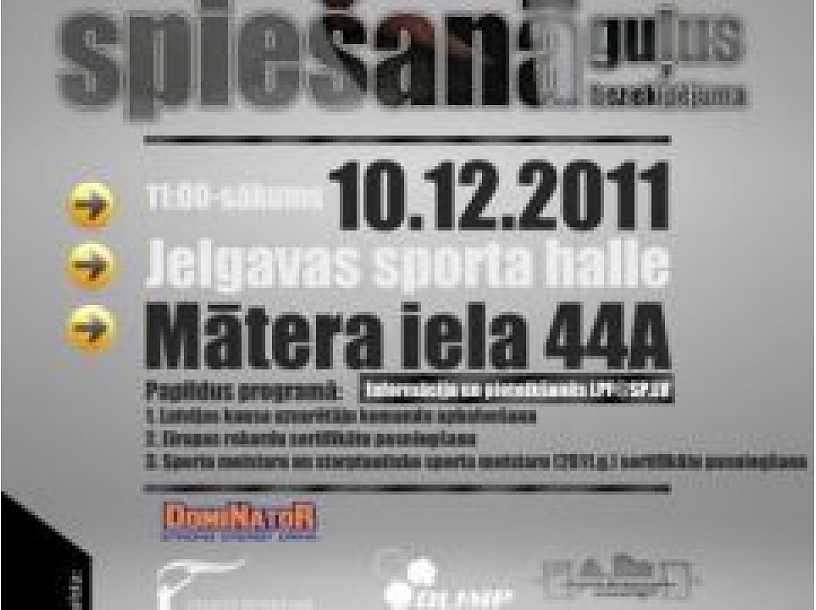 10.decembrī Jelgavas sporta hallē norisināsies Latvijas čempionāts svaru stieņa spiešanā guļus bez ekipējuma.