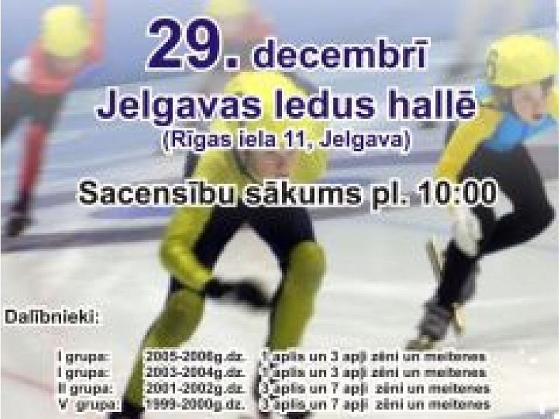 Kopš šorttreka nodaļas atklāšanas oktobrī Jelgavas Ledus sporta skolas audzēkņi jau ir veiksmīgi startējuši gan Polijā, gan Slovākijā. Tagad pienācis laiks sacensties tepat Jelgavā. Sacensības slidošanā notiks 4 vecuma grupās zēniem un meitenēm atsevišķi: