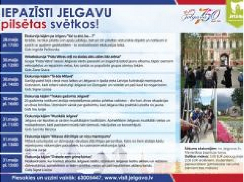 28.maijā, plkst.17 Ekskursija kājām pa Jelgavu "Vai tu zini, ka…?"