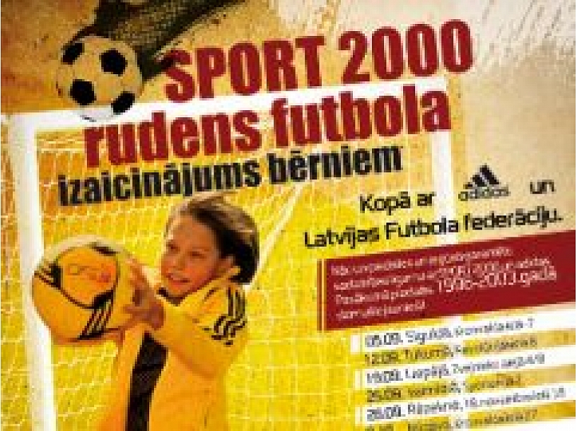 Sports un fiziskās aktivitātes ir būtisks faktors personības attīstībā jebkurā vecumposmā, taču īpaši svarīgi tas ir bērnu un jauniešu vidē! Tāpēc veikalu tīkls "Sport2000" sadarbībā "Adidas" un Latvijas Futbola federāciju pirmo reizi Latvijā rīko "Sport 2000 rudens futbola izaicinājums bērniem", kas norisināsies 7 posmos dažādās Latvijas pilsētās!Pasākuma ietvaros futbols tiks piedāvāts kā sporta spēle, kurā bērniem ir iespēja iesaistīties un individuāli pierādīt sevi dažādos futbola spēles elementos, piem. bumbas vadīšanā, sitienos pa vārtiem, skriešanā u.c.. Uzdevumus vērtēs pieredzējuši Latvijas futbola speciālisti. Katra posma noslēgumā spēle katrā vecuma grupā starp posma labākajiem, pēc iepriekš uzdevumos uzrādīto rezultātu kopvērtējuma.